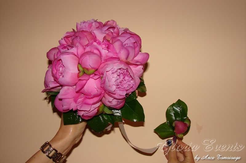 Buchetul de mireasa realizat din bujori nu este unul traditional, insa este foarte expresiv prin bogatia de petale si mireasma lor deosebita. Corola generoasa a bujorilor permite crearea de buchete de mireasa romantice, fie ca sunt doar din bujori, fie in combinatie cu alte flori.