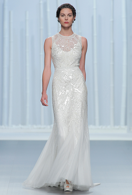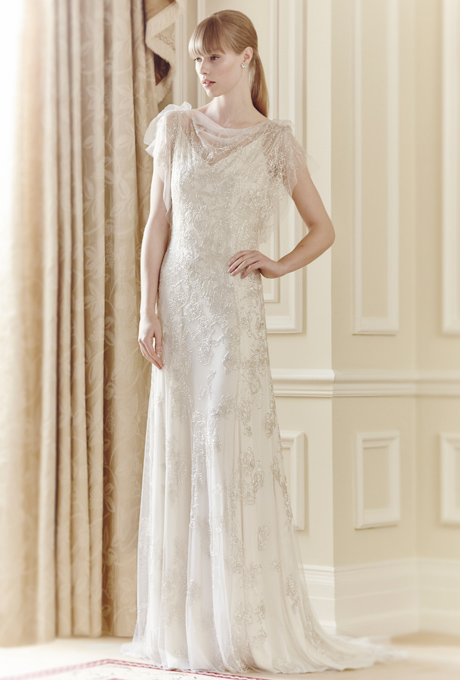 Fie ca vorbim de rochii de mireasa clasice, vintage sau futuriste, satinul este unul dintre cele mai cautate materiale in acest an. Acesta este si motivul pentru care am decis sa-ti prezint o rochie vintage ce cade pe corp, cu o croiala in forma de V, ce evidentiaza liniile bustului, ale abdomenului si taliei. Umerii acestei rochii, realizati din mii de margelute translucide, aduc o nota de eleganta, acesta tinuta nemaiavand nevoie de accesorii.