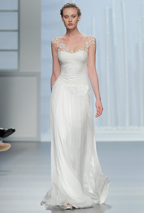 Si rochia din imaginea de mai sus aminteste de acele tinute nuptiale clasice, in care broderiile jucau un rol important. In afara trandafirilor dantelei care acopera suav umerii domnioarei, un alt element vintage este croiala aparte a zonei inferioare a rochiei, aceasta fiind cambrata in jurul taliei, faldurile incepand sa prinda contur din jurul coapselor.